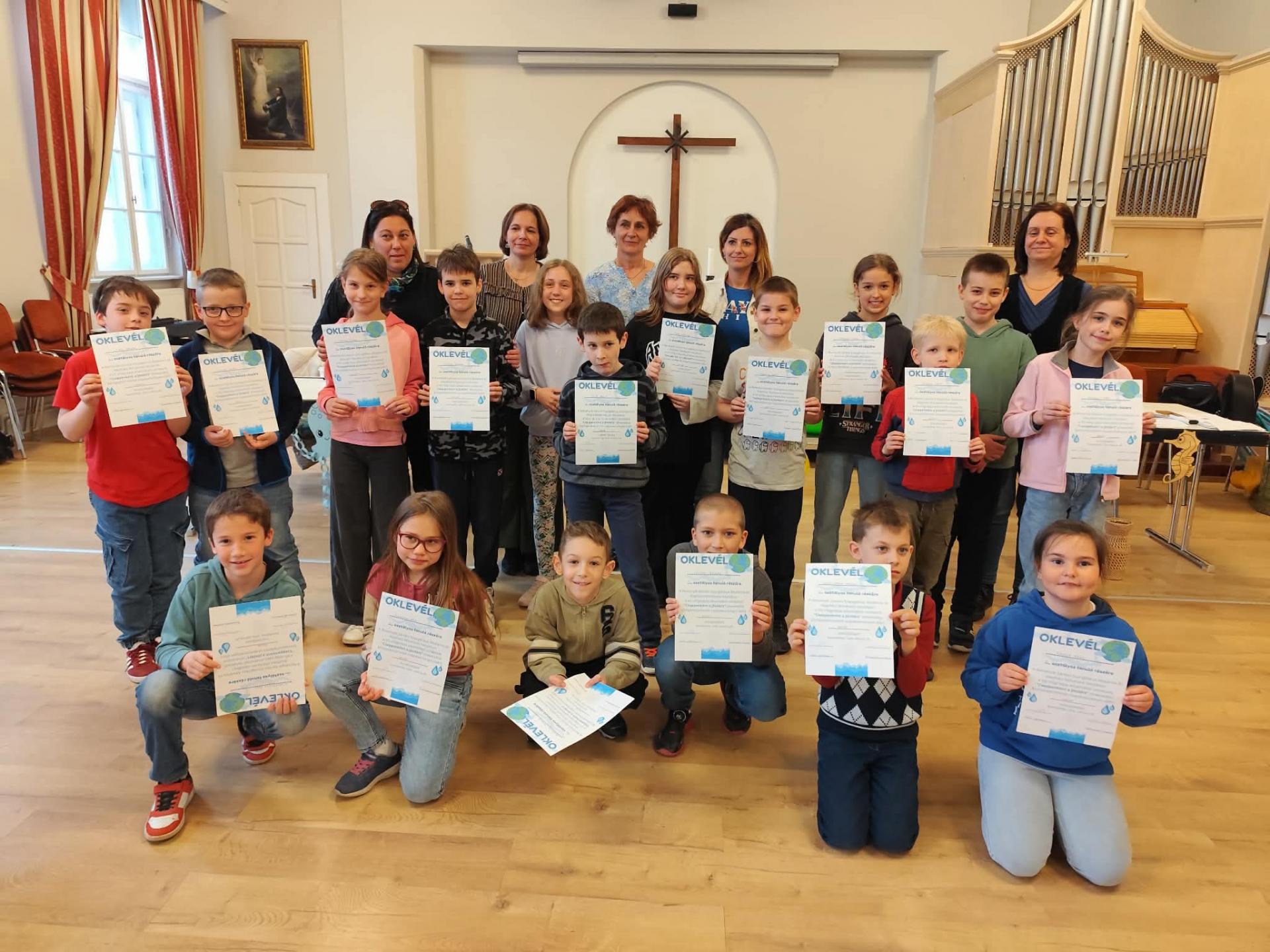 A víz világnapja alkalmából iskolánkban megrendeztük a „Cseppenként a jövőért” elnevezésű játékos vetélkedőt. A gyerekek izgalmas és változatos feladatokon mérhették össze tudásukat és ügyességüket: keresztrejtvény, betűkereső, kvíz, horgászat, puzzle az év élőlényeiből, vízhordás, „akváriumtakarítás”, rajzos feladat és tréfás strandos váltóverseny várta őket. A versenyen nemcsak iskolánk és bobai tagintézményünk tanulói vettek részt, hanem szombathelyi és táplánszentkereszti iskolák csapatai is, így igazán barátságos, vidám és élményekben gazdag hangulat alakult ki. Minden gyermek oklevéllel és ajándékokkal tért haza, mosolygós arccal és rengeteg új élménnyel. Külön szeretnénk megköszönni a zsűri munkáját, akik türelemmel, kedvességgel és szakértelemmel kísérték végig a versenyt. Köszönjük a felajánlásokat a VASIVÍZ ZRt.-nek és a Nyugat-dunántúli Vízügyi Igazgatóságnak, akik hozzájárultak, hogy a díjak és meglepetések még különlegesebbé tegyék a napot.