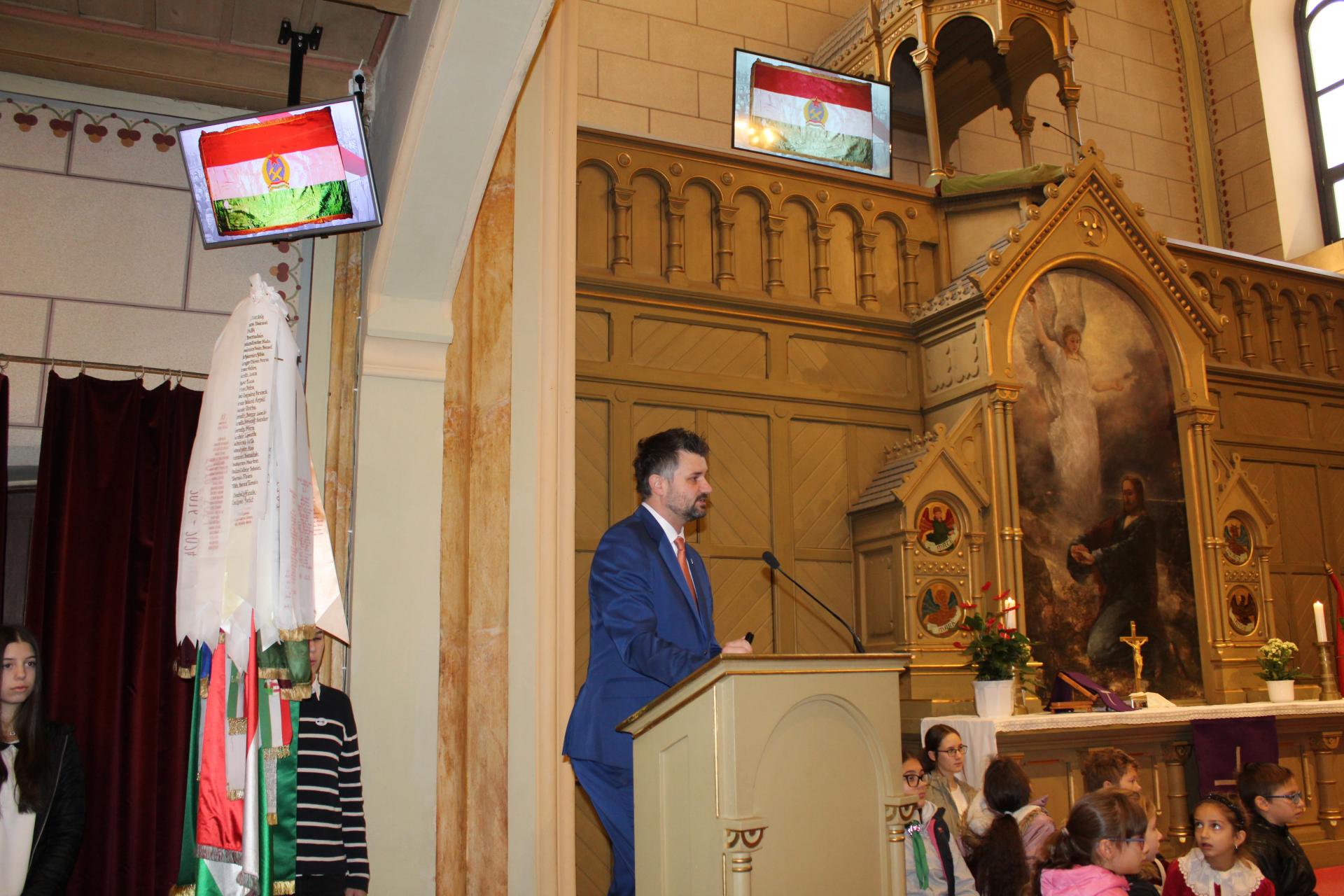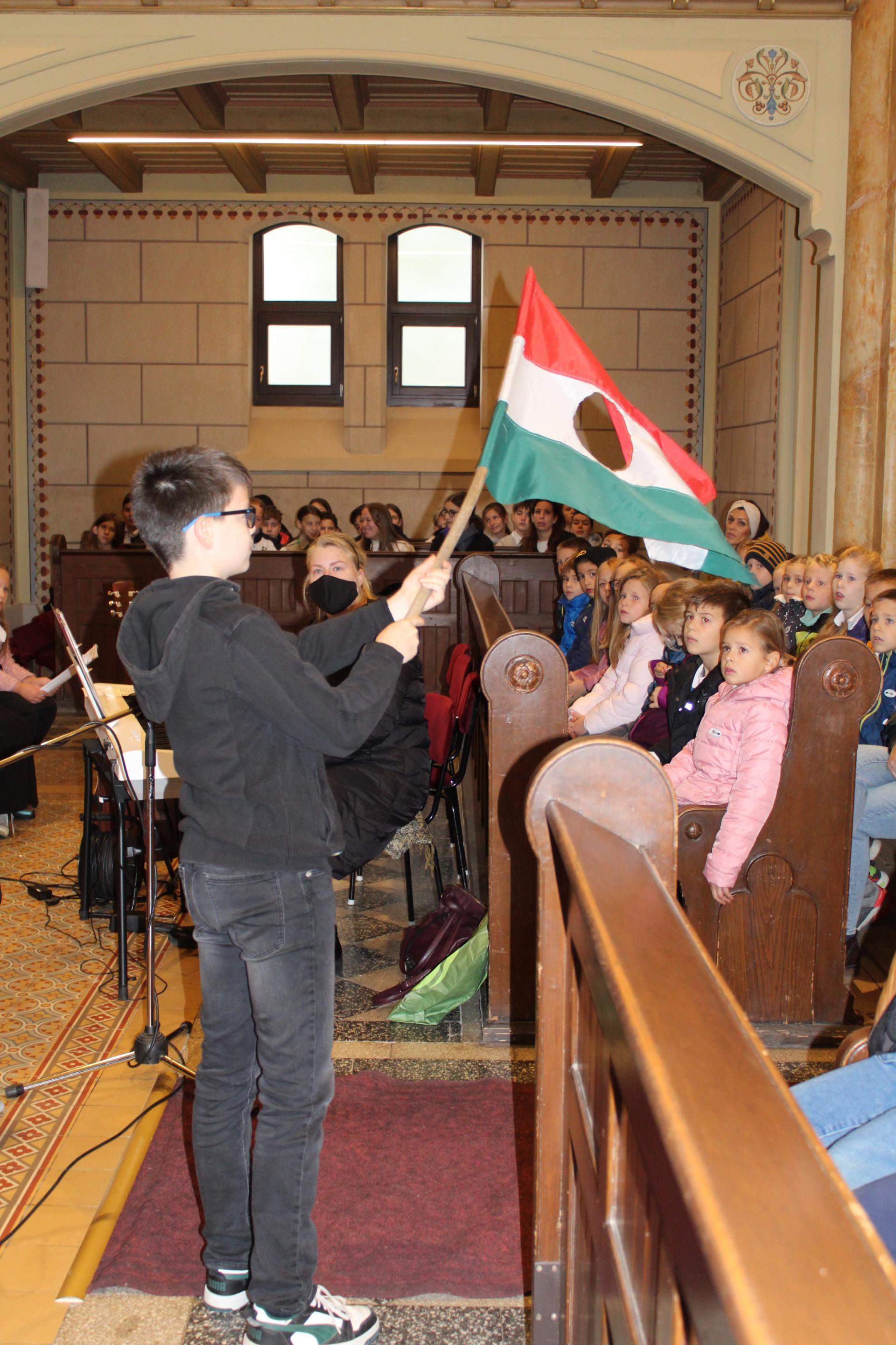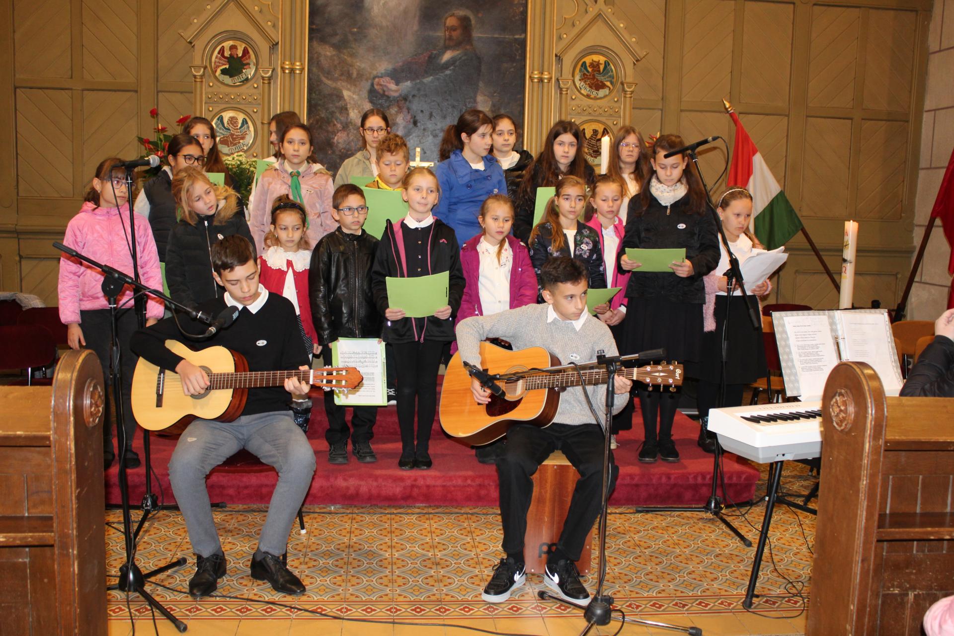 Hétfő reggel ünnepi hangulat lengte be a Szombathelyi Evangélikus Templomot, ahol iskolánk énekkara Bródy János: „Ha én rózsa volnék” című dalának meghitt előadásával nyitotta meg az 1956-os forradalom emlékére rendezett megemlékezést. A dal után Dalos Tibor történelemtanárunk egy rendhagyó, élményszerű tanóra keretében idézte fel a forradalom hősies és megrendítő eseményeit, felvillantva a kor eszméit, küzdelmeit és áldozatait. Az ünnepi műsort énekkarunk felemelő előadása zárta, amikor megszólalt az „Előre mind, pesti srácok” című dal – méltó, lélekemelő lezárásaként az emlékezésnek.
